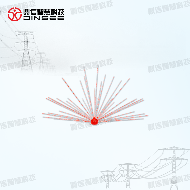磁吸式绝缘驱鸟刺安装、拆卸快捷便利,磁铁可抗台风,刺针为韧性材质。刺针定位片和底座选用聚碳酸酯为原料,一次性注塑成型,耐腐蚀、耐氧化、耐高温、绝缘性好,驱鸟刺整体设计为红色,鸟类惧怕的颜色,防止鸟类在铁塔上、横担上筑巢、栖息,防鸟性能强,防鸟范围180度,60~160CM无盲点,驱鸟效果明显,确保线路安全运行,减少停电事故的发生。