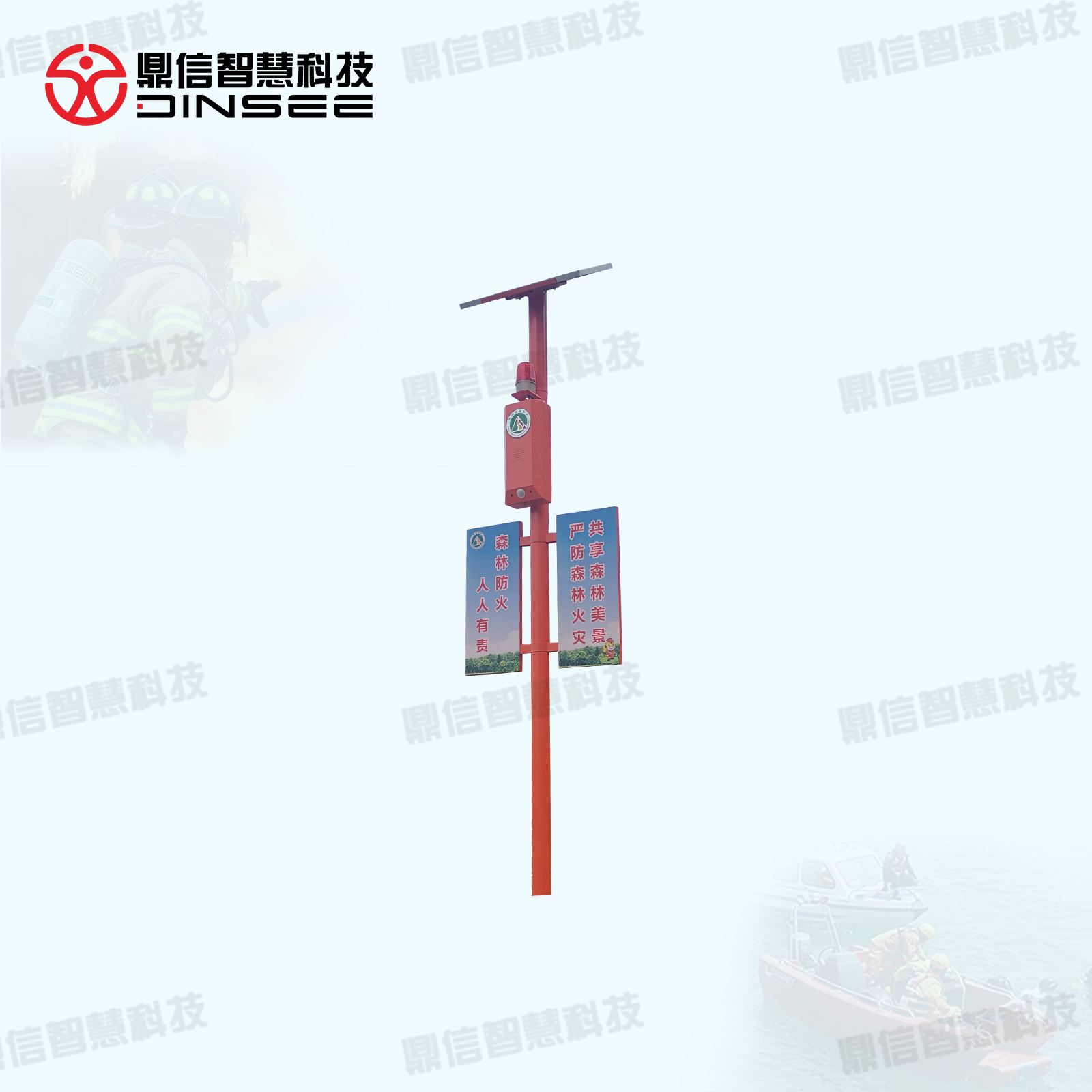 为了提升森林防火信息化水平,落实森林防火工作的指导方针,太阳能语音警示杆,通过置放于人流/车流通行的卡口位置,移动触发(微波/红外)工作模式,当感应到移动的人或物体时,高音喇叭立即提示:“您已进入林区,禁止野外用火,保护生态环境,从你我做起”,同时红蓝色警示灯开始爆(频)闪提示。