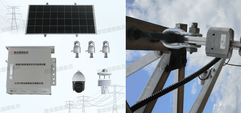 Transmission line ice-covering online monitoring device through real-time measurement of conductor tension, insulator tension, insulator inclination (lateral deflection angle, along the line deflection angle), combined with ambient temperature, humidity, wind speed, wind direction and other data, the use of the system's intelligent algorithms can be accurately calculated conductor ice-covering thickness, to provide a reference for the line de-icing.