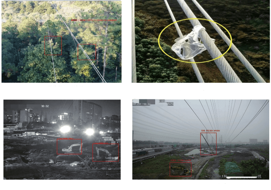 2、Intelligent identification and analysis: Through the AI algorithm equipped, it is able to intelligently identify abnormal situations near transmission lines, such as new houses, trees growing super-high, heavy machinery construction, changes in the terrain near the base of the tower, theft or intentional destruction of power facilities;