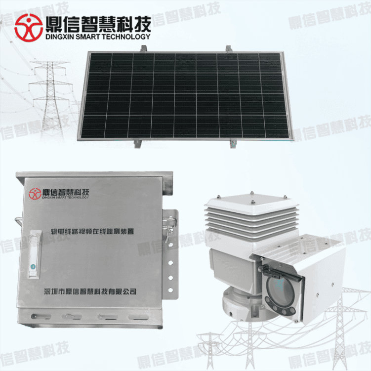 The transmission line image video online monitoring device collects visible and infrared light image data of the transmission channel through the double optical dome installed on the pole tower, automatically locks the abnormal hidden danger within the target range through the image recognition technology, makes the alarm prompts, and uploads it to the monitoring center by using the 4G/5G/WIFI wireless network to realize the remote monitoring of the line, temperature measurement, and the warning of hidden danger.