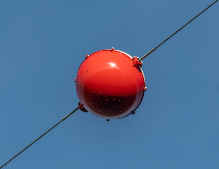 As the name suggests, they mainly serve as markers and warnings. When pilots see these balls during flight, they will know that there is a high-voltage line here, thus avoiding the occurrence of accidents in which the aircraft touches the line.