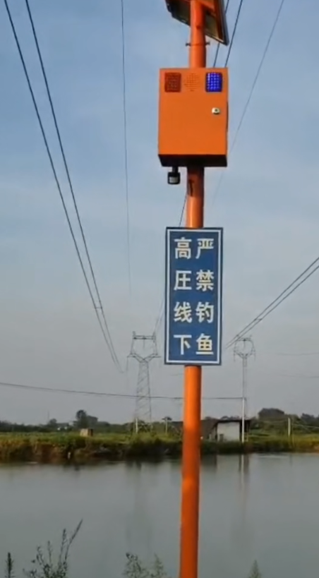 High-voltage line anti-angling intelligent warning pole belongs to the intelligent integrated alarm device (anti-fishing special), the device has intelligent high-precision detection function, capable of behavioral identification, automatic playback of the alarm voice and red and blue light flashing, to remind the personnel of the high-voltage danger to stay away from, and linkage of high-definition cameras immediately take pictures and send them back to the monitoring center, early warning reminders, the staff can also be remotely linked to the scene to stop the dangerous angling behavior.