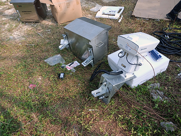 电线路防山火在线监测装置是由主控单元、视频监测单元、红外双光谱山火监测单元、激光照明器、通信单元、供电单元、安装支架及辅材组成;通过红外双光谱山火监测单元实时自动巡航探测目标环境的热源,对山火发生点定位的功能,并具备把山火发生点的具体地点用无线4G/5G网络的方式发送给电力部门的功能,指挥中心可以能在装置的后台软件、移动终端等进行直观云台遥调视频显示观看山火发生点,同时可利用GIS地理信息系统的路径规划,以短路径指挥扑救队员赶往现场,完成扑救工作。