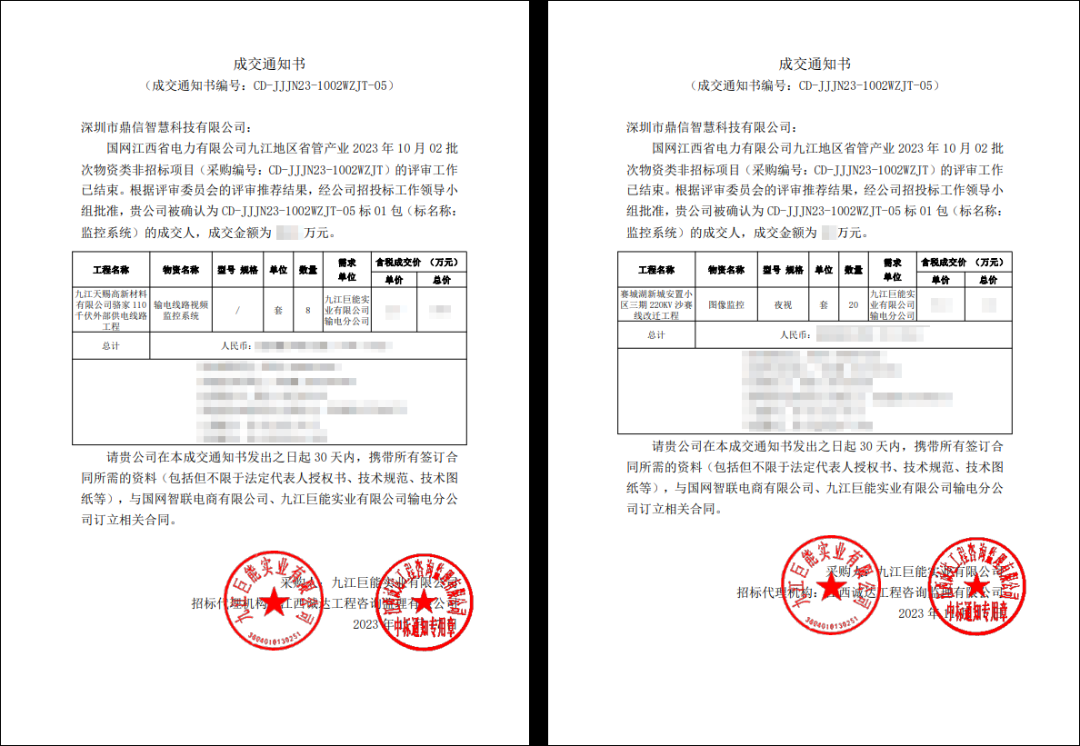 2023年10月02日,深圳市鼎信智慧科技有限公司在这次物资类公开招标采购中,成功中标国网江西省电力有限公司采购主设备 输电线路图像监控系统 (招标编号CD-JJJN23-1002WZJT)佳绩频传。