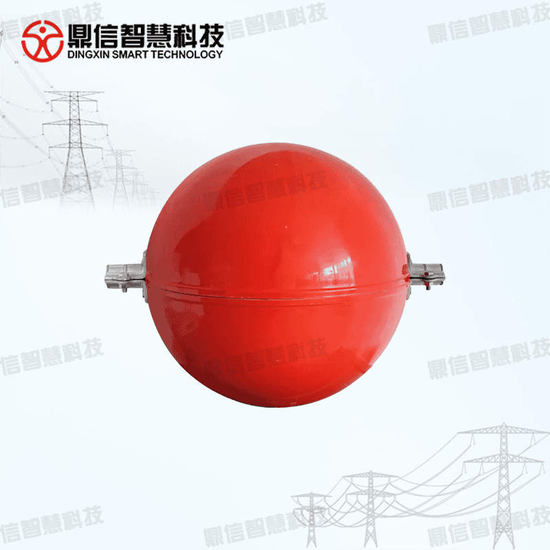 有没有明白一点?没有明白没关系,小编拿我们鼎信智慧科技的输电线路航空标志球DX-JSS100-BZQ来举个例子,也可以叫反光安全球。该装置被广泛应用于高压输电线路,特别是超高压和跨江输电线。
