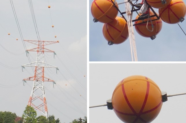 这个标志球采用高品质玻璃纤维、树脂等耐腐蚀、耐高温、绝缘、防锈、防尘、防水的原料制成,具有强大的抗冲击能力。颜色可定制,包括白色、红色、橙色、橙白双色、橙红双色等。安装简便,挂设在导线上,后期免维护;也不会干扰高压导线的正常运行,同时具备抗干扰能力。