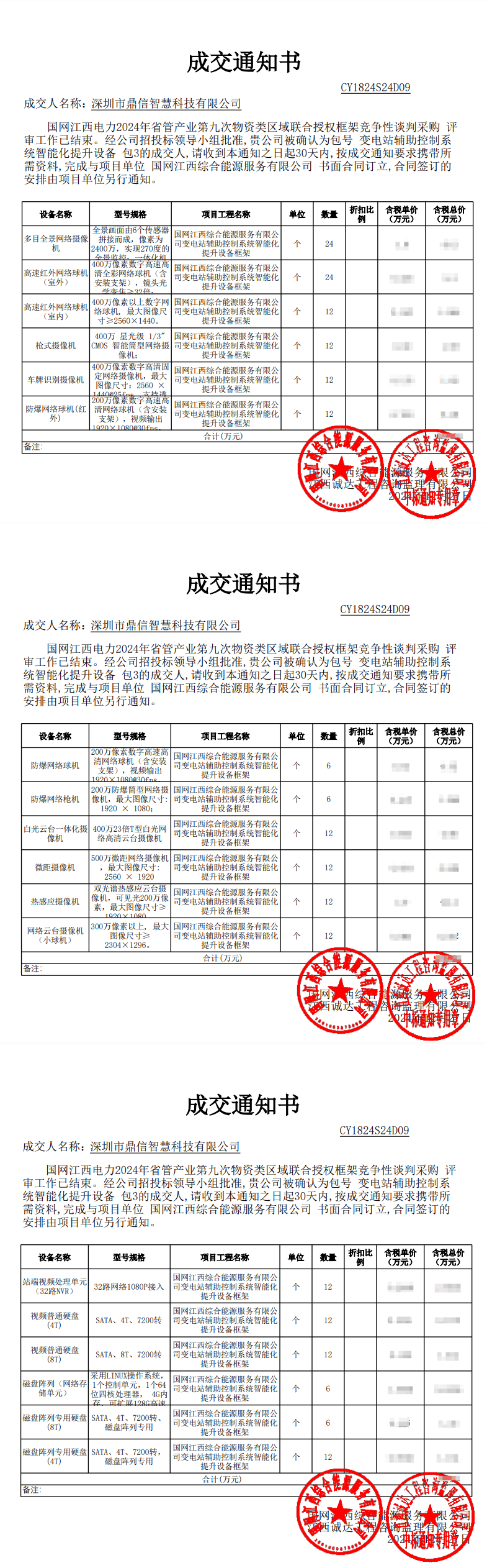 2024年12月27日,深圳市鼎信智慧科技有限公司在这次物资类公开招标采购中,成功中标为国网江西综合能源服务有限公司采购主设备变电站辅助控制系 统智能化提升设备(招标编号: CY1824S24D09)佳绩频传。