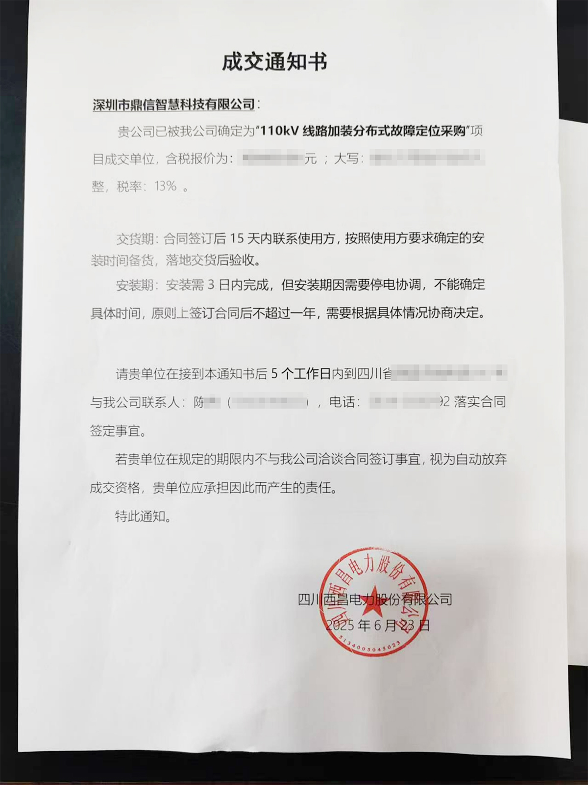 2025年6月23日,深圳市鼎信智慧科技有限公司在这次物资类公开招标采购中,成功中标为四川西昌电力股份有限公司采购主设备分布式故障定位 佳绩频传。